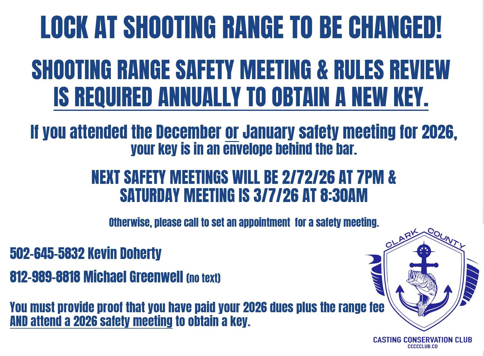 Access to the Shooting Range is $100/year and can be added to your membership at checkout. Subject to board approval of membership application. Key is issued at completion of gun range safety meeting (by appointment only). Request appointment by email to ccccclubinfo@gmail.com.